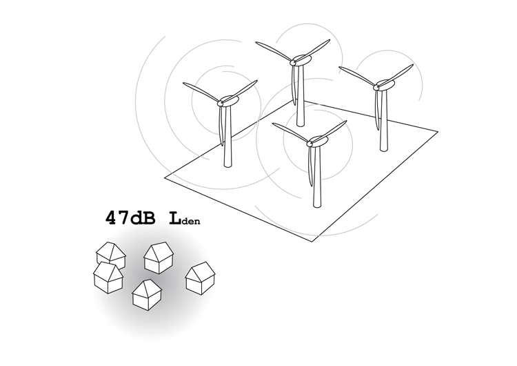 Wij willen dat nieuwe windparken, zoals in de Structuurvisie begrensd, voldoen aan 47 dB Lden en 41 dB Lnight Bij ruimtelijke plannen voor windparken wordt gemotiveerd of er wordt voldaan aan de genoemde normen.
