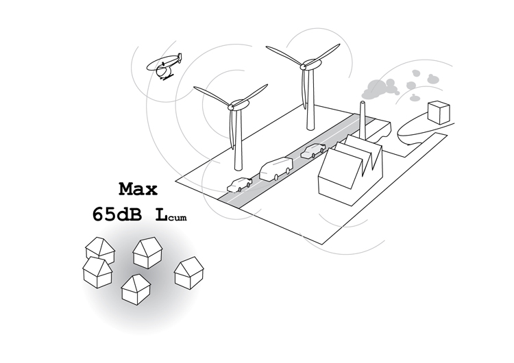 Wij willen de cumulatieve geluidbelasting beperken tot maximaal GES-5 (LCUM 65 dB).